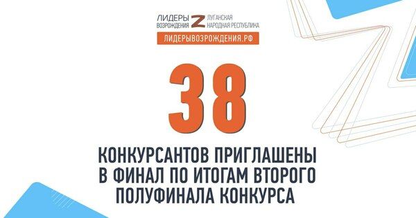 "По итогам второго полуфинала конкурса "Лидеры возрождения. Луганская Народная Республика" приглашение в финал получили 38 участников. Ранее по результатам первого полуфинала конкурса, прошедшего в марте, уже были определены первые 57 финалистов. Таким образом, на сегодняшний день 95 конкурсантов приглашены в финал", - говорится в сообщении.