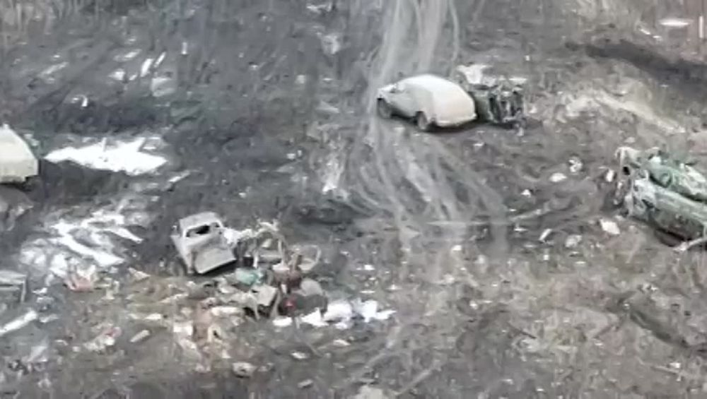 Разбитая техника ВСУ на дороге к западу от Артемовска