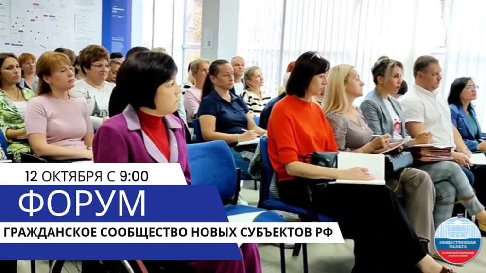 Регистрируйся на Форум гражданского сообщества новых субъектов России 12 октября с 9:00 до 16:00 в Луганском академическом украинском музыкально-драматическом театре (ул