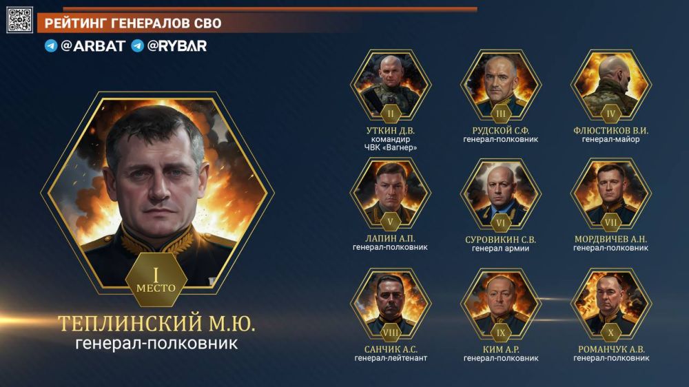 За характер и волю к Победе, полководческий талант, а также участие в самых сложных сражениях СВО, Михаил Юрьевич Теплинский занимает первое место нашего рейтинга.