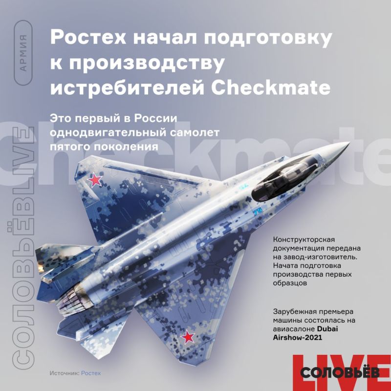 Ростех начал подготовку к производству первых истребителей Checkmate. Это первый в России однодвигательный самолет пятого поколения. Конструкторская документация уже передана на завод-изготовитель. Начата подготовка производства первых образцов.