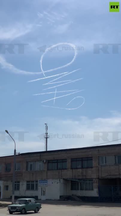 Самолёт в небе над Луганском нарисовал фразу «9 Мая» в честь 78-й годовщины Великой Победы