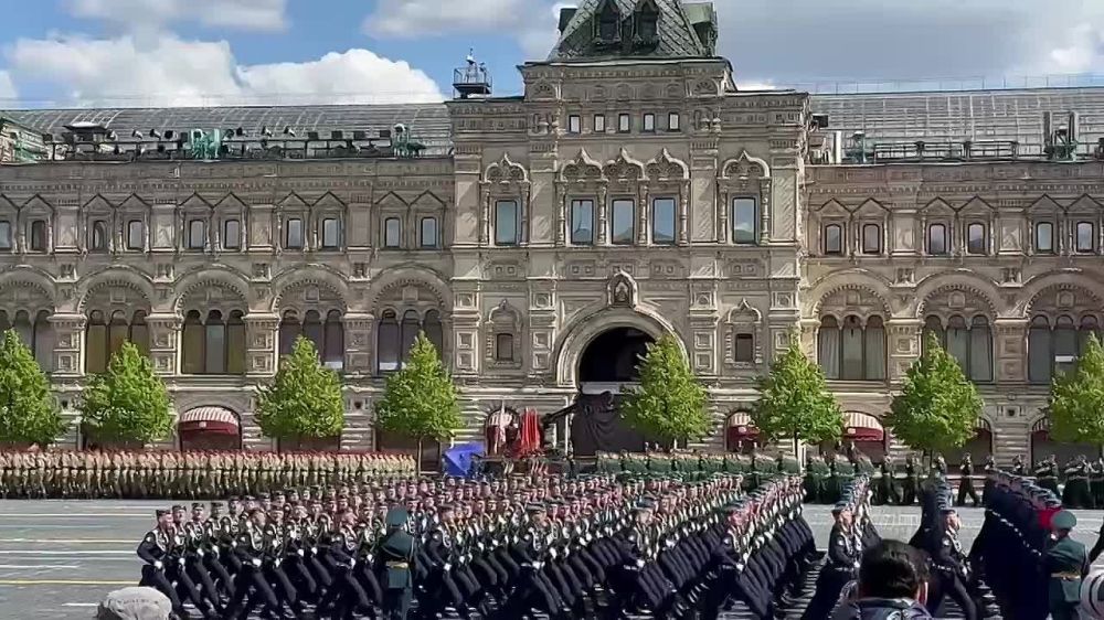 Сегодня многие участники военного парада, проходя мимо трибун скандировали: