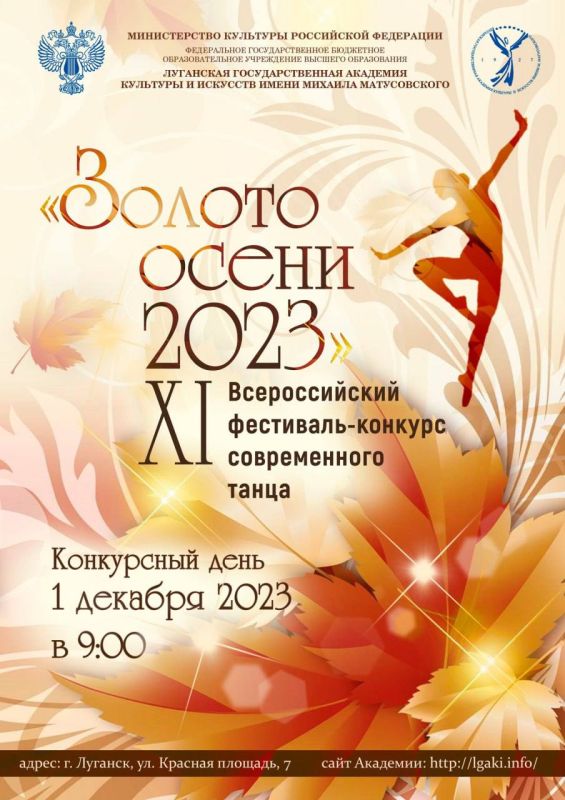 Сегодня в Луганске в академии Мотусовского состоится Всероссийский фестиваль-конкурс современного танца «Золото осени»