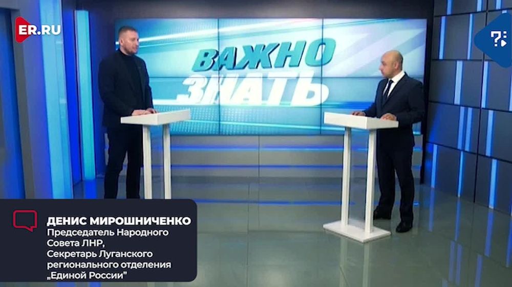 Секретарь Луганского регионального отделения «Единой России» Денис Мирошниченко в эфире программы «Важно знать» на...