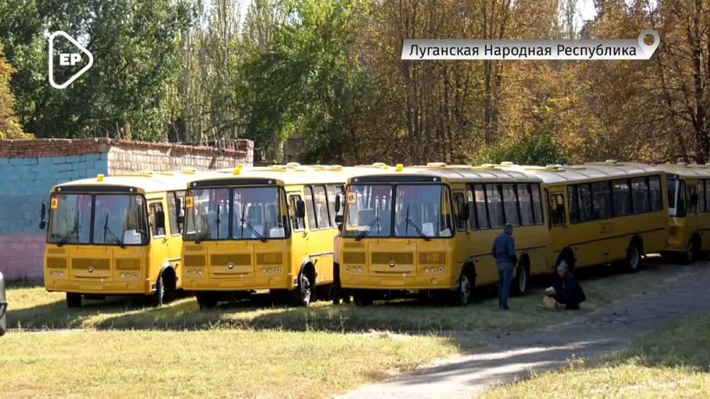 Школы ЛНР получили 32 новых автобуса по народной программе Единой России Они оснащены всем необходимым для безопасной перевозки детей