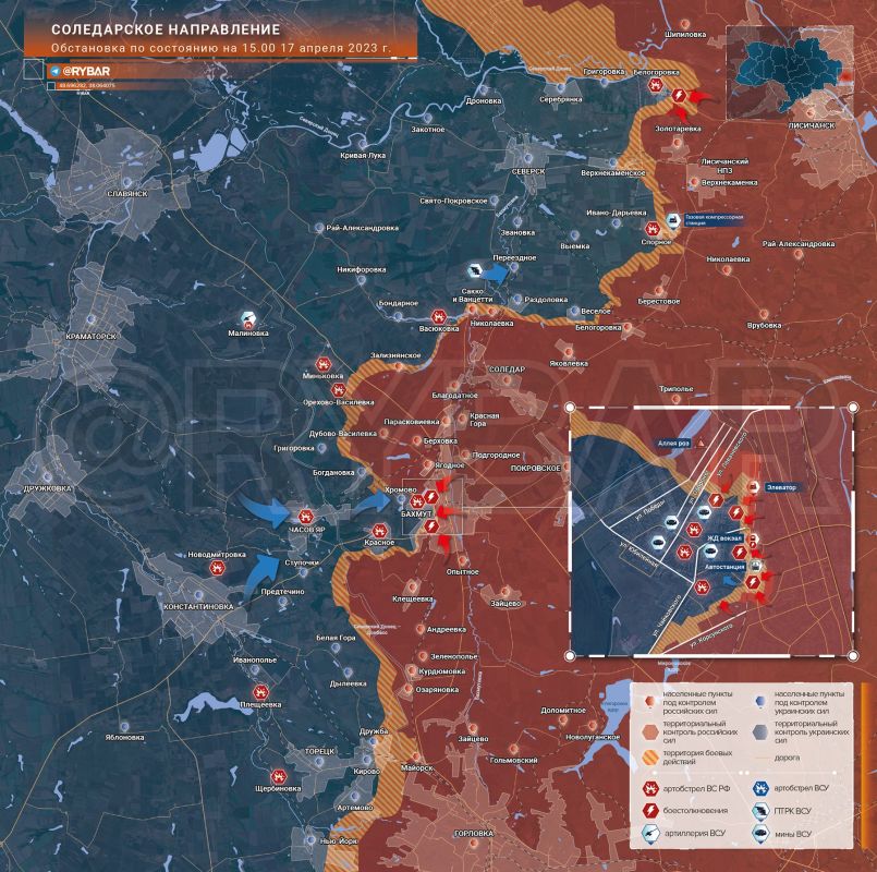 Тем не менее украинские формирования пытаются контратаковать и сдерживать продвижение на западную окраину. Чуть севернее вокзала «вагнеровцы» выбили ВСУ из района Артемовского элеватора.