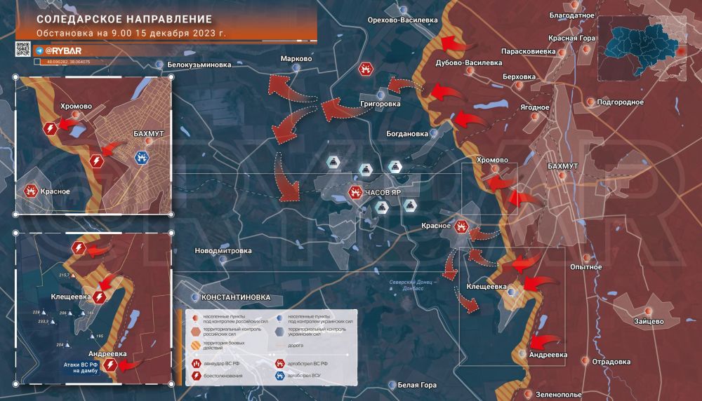 Штурм расположенного на высоте Часова Яра в лоб — задача сложная (рудники, карьеры и несколько лесов с урочищами взять с наскока не выйдет). Вероятнее всего, ВС РФ будут обходить укрепрайон с севера и юга, поэтому и ведётся наступление в направлении Григоровки.