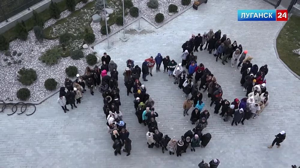 Сто молодых людей собрались у Луганского Дома молодёжи для участия в массовом флешмобе, приуроченном к началу обратного