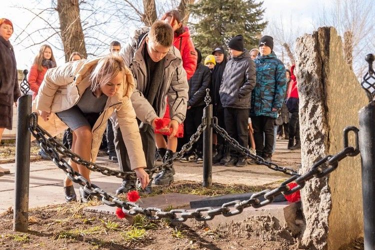 Завершился урок мужества возложением цветов к могиле пионера Анатолия Качура, тоже учившегося в этой школе. Подростка фашисты расстреляли 13 февраля 1943 года только за то, что он не остановился по приказу немецкого офицера.