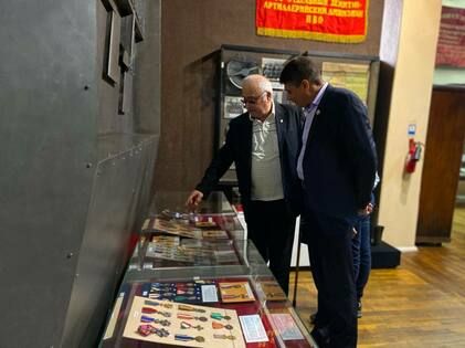 Коллекционер выразил благодарность сотрудникам музея, министерству культуры, которые "привели в порядок мою коллекцию" и провел краткий обзор по наградам.