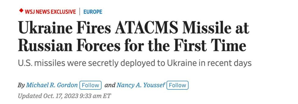 Украина 17 октября впервые применила ракеты ATACMS по российским военным объектам, пишет The Wall Street JournaI