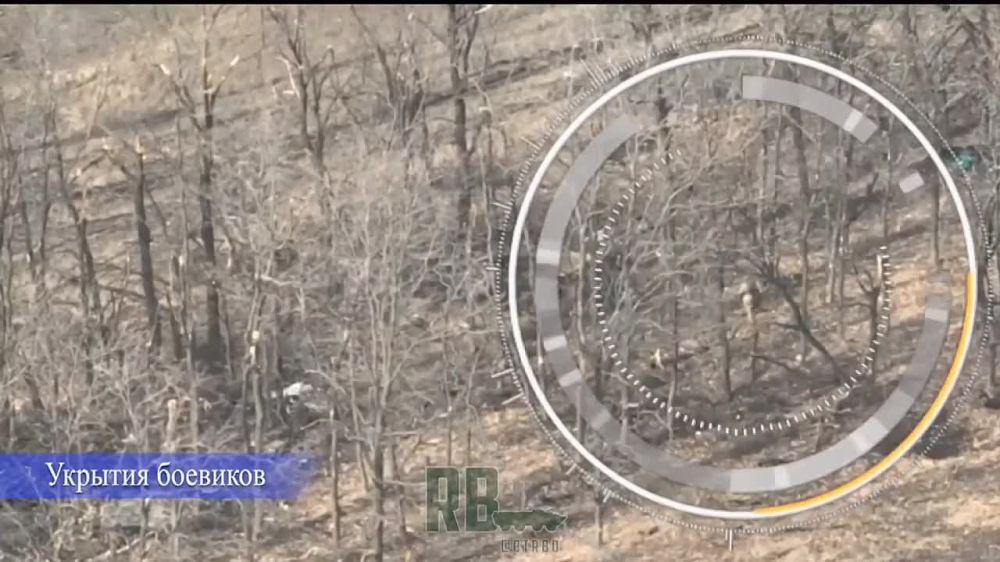 Уничтожение блиндажа ВСУ огнем российской артиллерии в окрестностях населенного пункта Терны Луганской области