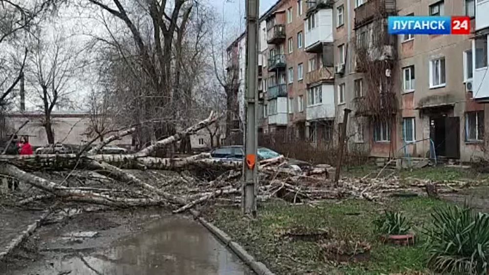 Ураганный ветер в поселке Юбилейный вырвал с корнем дерево и бросил на припаркованный автомобиль