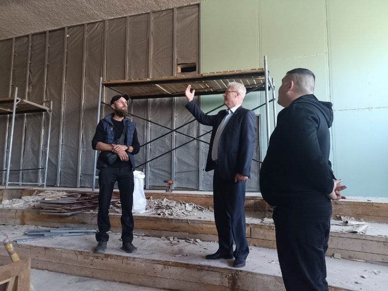 Силами подрядной организации ООО «ИСК» ведутся ремонтные работы помещения кинозала. Идет отделка стен по специальной технологии с эффектом шумоизоляции, прокладка электропроводки. На проведение всех ремонтных и отделочных работ выделены средства из местного бюджета.