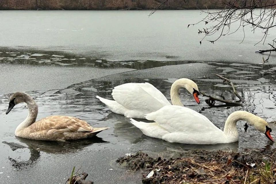 Всех трех лебедей удалось спасти из ледяного плена, в данный момент они в безопасности.