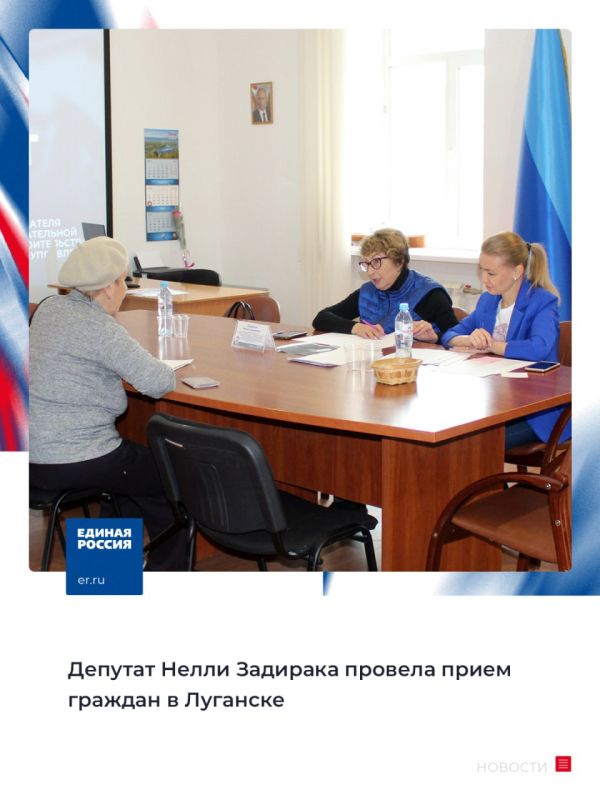 В Луганске 25 апреля в Региональной общественной приемной председателя партии «Единая Россия» Д.А. Медведева в ЛНР депутат Народного Совета ЛНР, участница предварительного голосования «Единой России» Нелли Задирака провела личный прием граждан