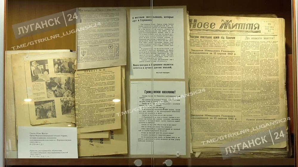 В Луганске представили выставку документов, посвященных восьмидесятилетию освобождения Ворошиловграда от фашистких захватчиковКлючевые печатные экземпляры периода оккупации и освобождения Луганщины бу