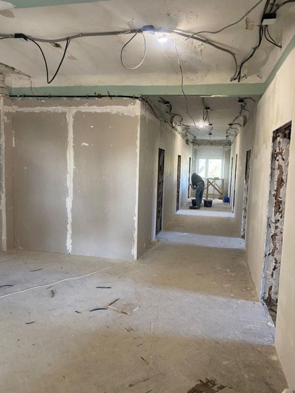 В здании уже установлены новые окна и двери. В настоящее время прокладываются коммуникации, выполняются отделочные работы.