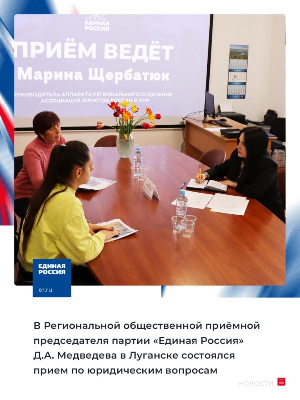 В Региональной общественной приёмной председателя партии «Единая Россия» Д.А. Медведева в Луганске состоялся прием по юридическим вопросам