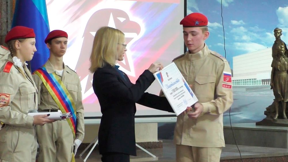 Новый участник вступил в ряды «Юнармии» в Музее «Молодой гвардии» в Краснодоне в Луганской Народной Республике