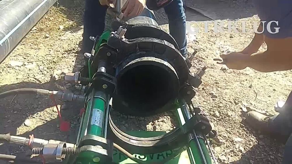 В данный момент специалисты выполняют пайку трубы, которую затем уложат в подготовленную траншею.