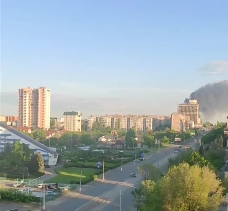 Видео пожара в Луганске после взрыва, который мог быть следствием ракетной атаки ВСУ