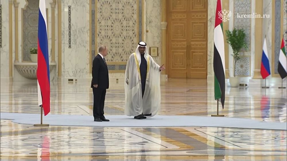 Во дворце Каср Aль Ватан состоялась церемония официальной встречи Владимира Путина Президентом ОАЭ Мухаммедом бен Заидом Аль Нахайяном