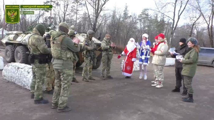 "Спасибо вам, юнармейцам, Деду Морозу и Снегурочке, что приехали, привезли нам письма и подарки. Желаю всем счастливого Нового года", - сказала российский военнослужащий с позывным "Стрелок".