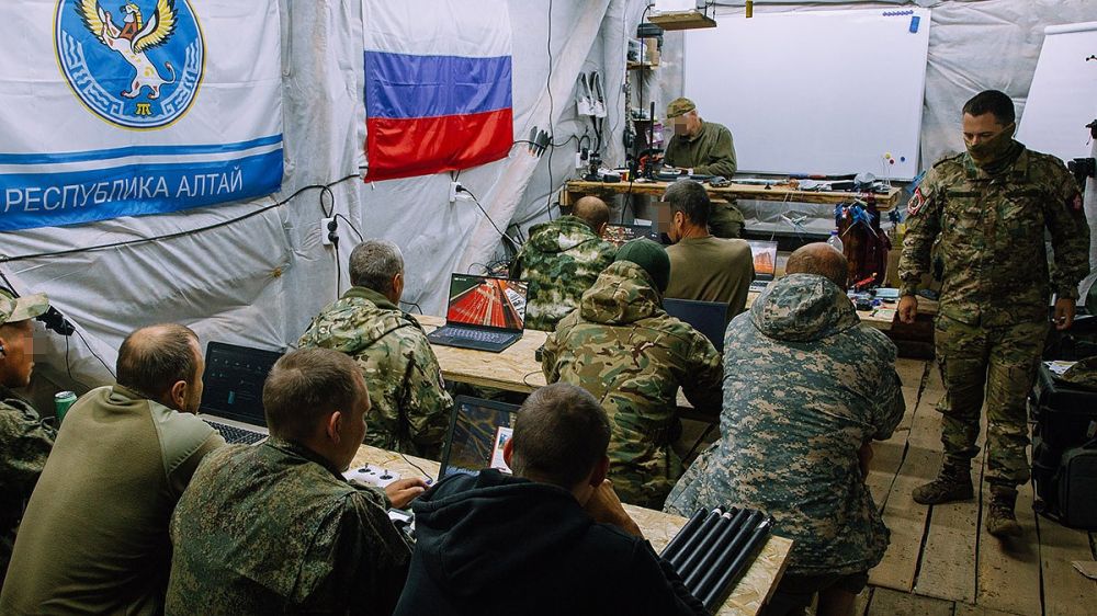 Если в посадке со всех сторон блиндажи, то в середине, получается, двор? Вот в этом дворе мы сидим со «Стилистом» - это один из создателей центра, человек гражданский. Вместе с руководителем центра (позывной «Пастор») они приехали с Алтая, чтобы помогать бойцам. Сначала возили гуманитарную помощь - травяной чай, тушенку из марала, танковые аккумуляторы, дроны. Потом выяснилось, что летать на FPV-дронах бойцы не умеют, а вражеские камикадзе летают повсюду. Тогда и решили за счёт пожертвований создать этот центр при военной части.