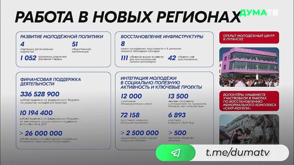 «Более 90% российской молодежи испытывает гордость за свою страну»Об этом в ходе «правительственного часа» заявила руководитель Федерального агентства по делам молодежи Ксения Разуваева