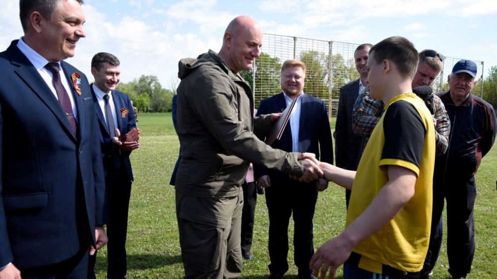 Дмитрий Чернышенко совместно с Леонидом Пасечником посетил Луганское высшее училище физической культуры, где вручил учащимся сертификат на 50 комплектов спортивной экипировки.