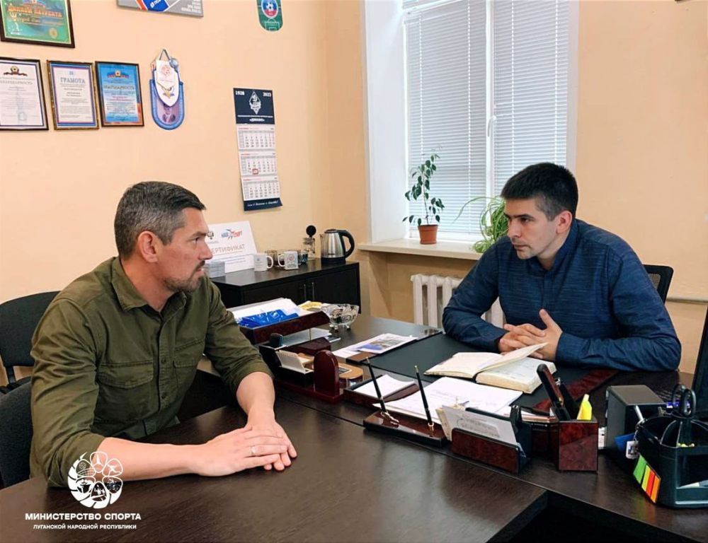 Министр спорта ЛНР Олег Шеренешев и председатель Всероссийской общественной организации «Федерация лзертага России» Дмитрий Солодов обсудили перспективы создания и государственной аккредитации региона