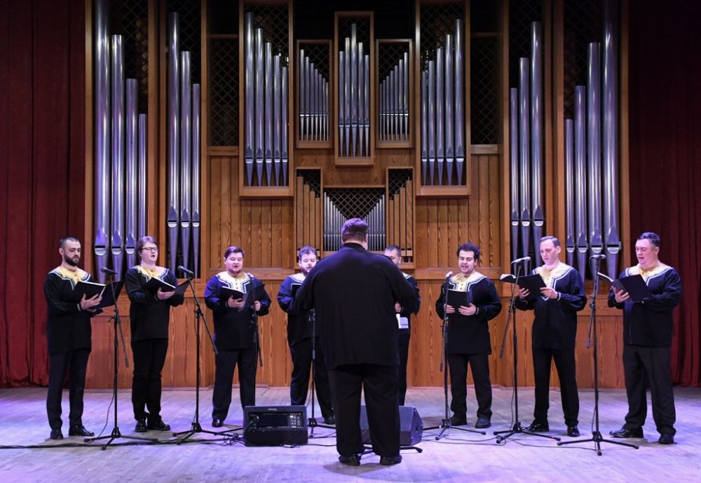 Мужской хор «Покров» из Москвы представил на сцене Луганской академической филармонии концертную программу «Защитникам Руси – небесным и земным», сообщили в МКСМ ЛНР.