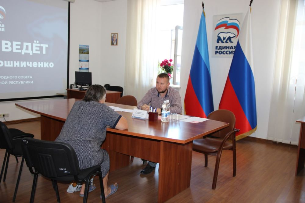 Председатель Народного Совета ЛНР Денис Мирошниченко в городе Луганске провел прием гражданЖители обращались с вопросами, касающимися пенсионного обеспечения, водоснабжения, капитального ремонта жилых