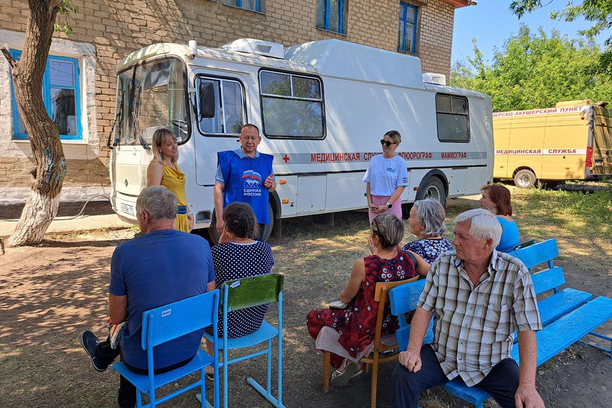 Вместе с партийным десантом «Единой России» они выехали в поселок Хмельницкий и пообщались с жителями, которые пришли на медосмотр. Жителей осмотрели терапевт и гинеколог, также работал цифровой диагностический комплекс.