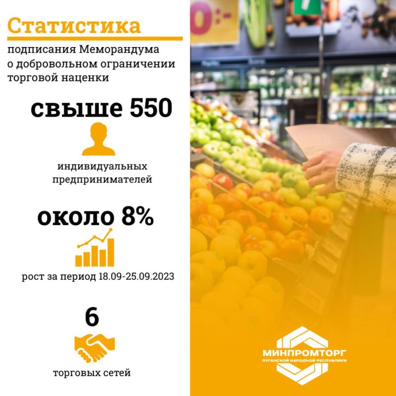 На прошлой неделе ещё свыше 40 представителей мелкорозничной торговли заключили с Минпромторгом ЛНР соглашение о добровольном ограничении торговой наценки на ряд социально значимых товаров.