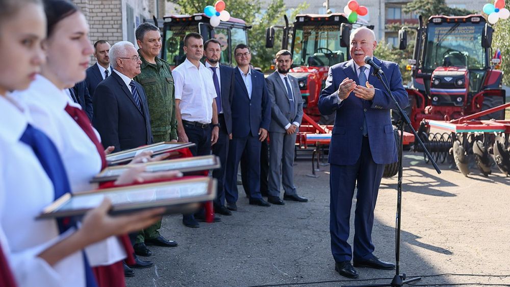 В Луганской народной республике он передал трем агроколледжам четыре трактора производства Минского завода. Вместе с тракторами колледжи получили и навесное оборудование к ним - плуги, предпосевные культиваторы и бороны (белорусского и российского производства). Они предназначены для обучения молодых трактористов Донбасса.