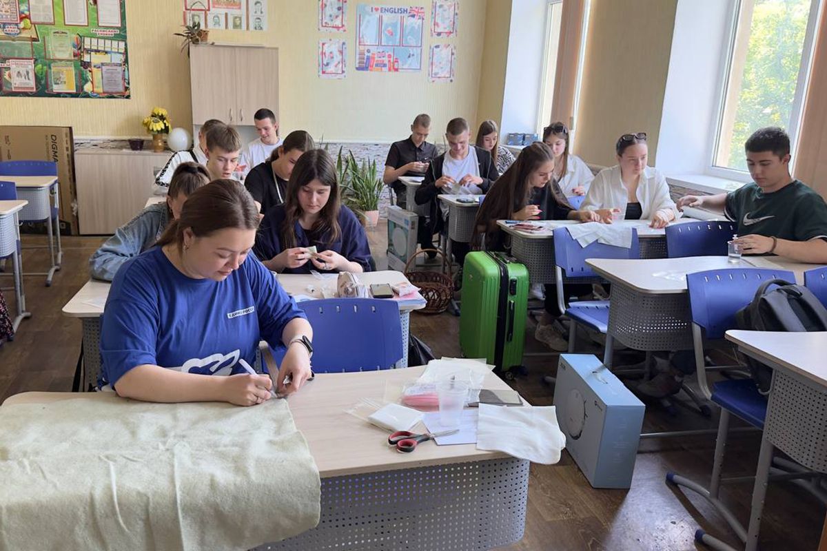 Активистки «Женского движения Единая Россия» провели для учеников 11 класса Антрацитовской школы №2 мастер-класс по изготовлению армейского «сухого душа».