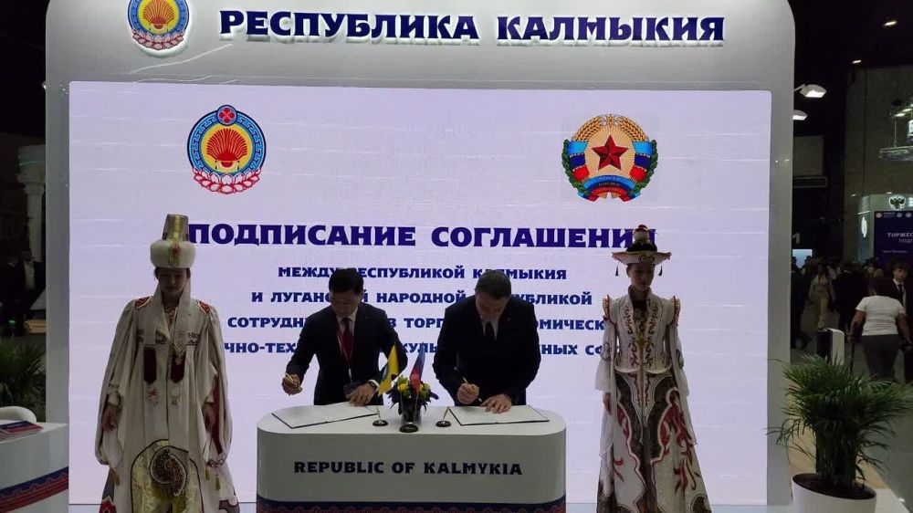 Видео подписания соглашения о торгово-экономическом, научно-техническом и культурном сотрудничестве между Луганской Народной Республикой и Республикой Калмыкия в рамках ПМЭФ