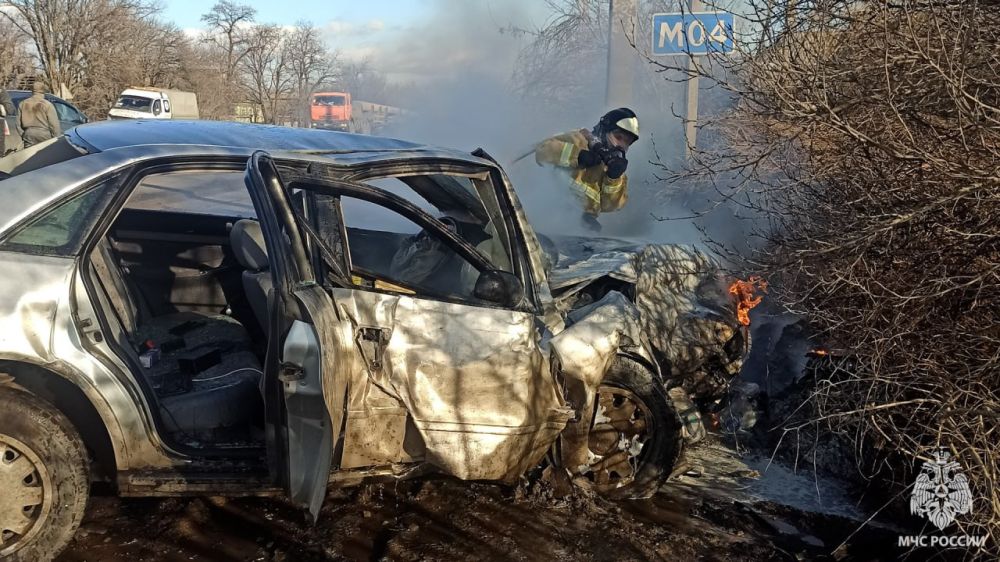 По прибытию подразделений был подан 1 ствол Б на горящий автомобиль, на втором автомобили спасатели отсоединили клеммы от аккумулятора.
