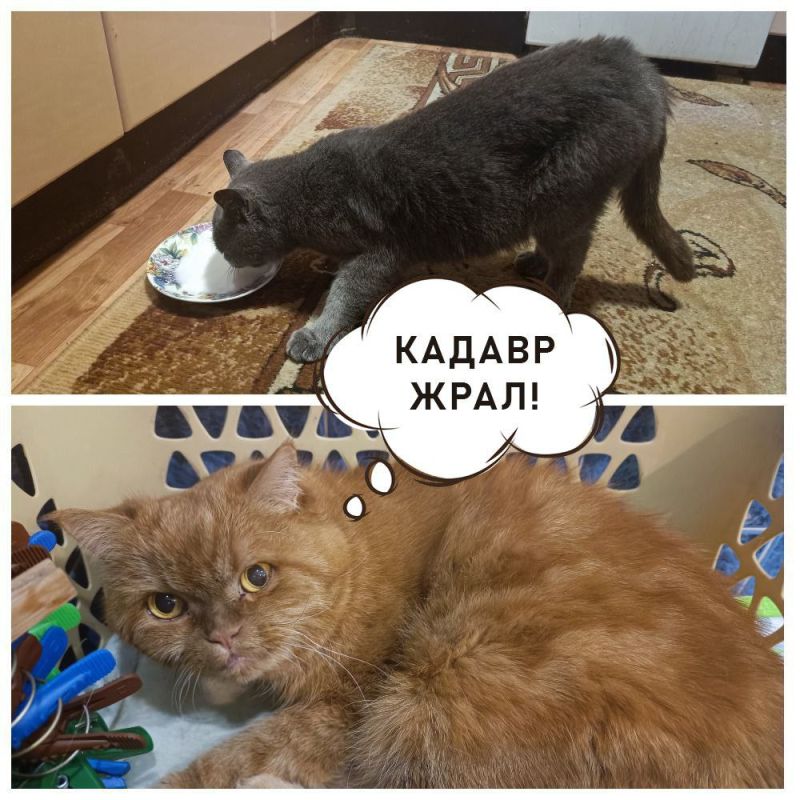 Кошочка-сурикат Марфа из разбомбленной Новотошковки приехала в Тамбов, к родителям разведчика Заката. Немедленно их обмурчала и съела всю еду Тамбовского Кота, персика Марсика. Марсик не очень доволен. Ну представьте: в ресторане официант подаёт вам еду, вы неспешно приступаете к трапезе, и тут наглая девица с шотландским акцентом подбегает и начинает жрать прямо из вашей тарелки!