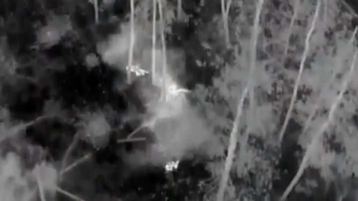 Установленная на беспилотном летательном аппарате камера зафиксировала момент поражения личного состава украинской армии в зоне проведения специальной военной операции