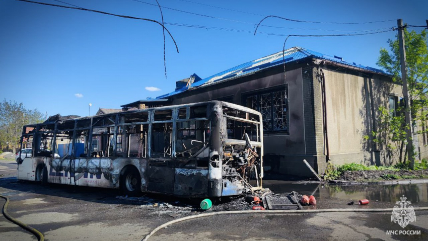 В 14:56 пожар был ликвидирован. Однако огонь успел уничтожить автобус и повредить здание неработающего магазина, в котором выгорело 2 оконных блока и крыша площадью 50 квадратных метров.