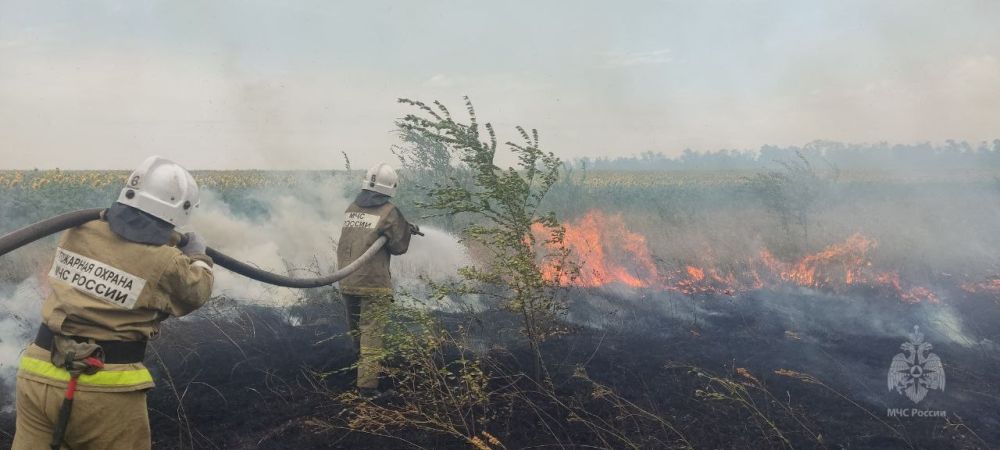 В Краснодонском муниципальном округе спасатели ликвидировали крупный сухотравный пожар.