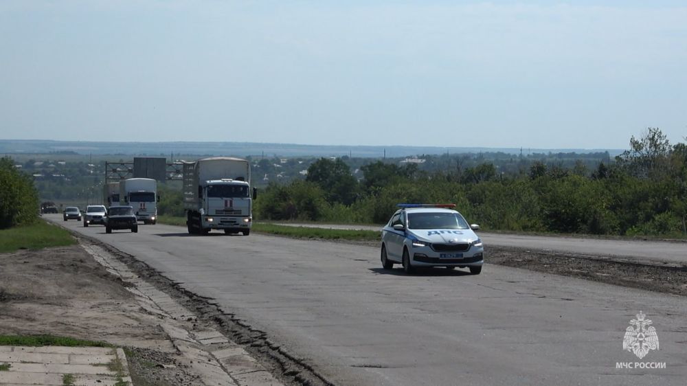 1 августа автомобили очередного конвоя МЧС России с помощью для жителей Донбасса прибыли в Лисичанск, затем отбыли в Рубежное.