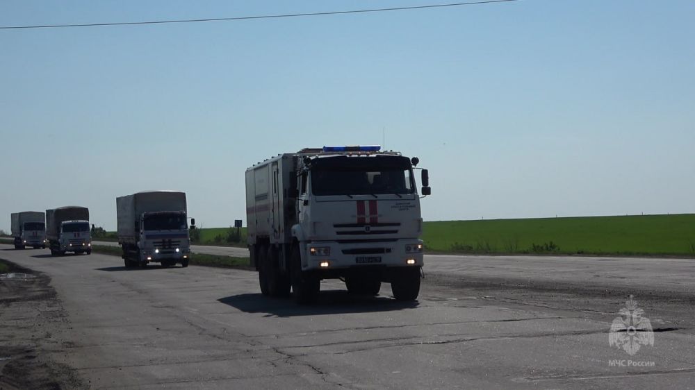 Нынешний конвой российских спасателей, состоящий из 11 автомобилей, доставил продукты питания общим весом 186 тонн.