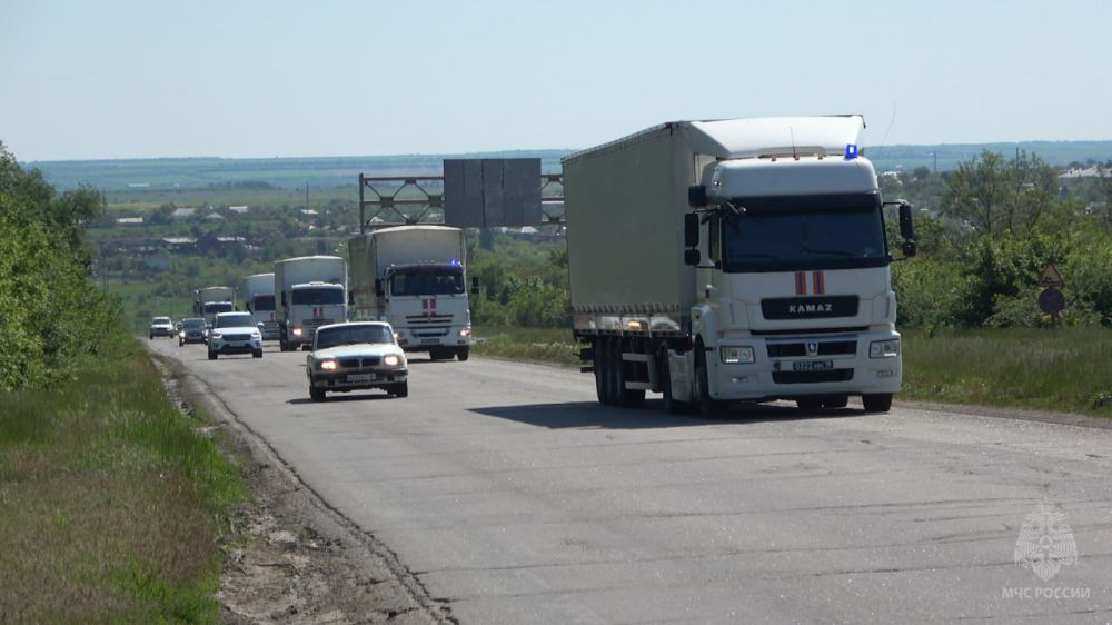 17 мая автомобили очередного конвоя МЧС России с помощью для жителей Донбасса прибыли в столицу ЛНР. Из Луганска машины сразу отбыли в Рубежное, Северодонецк.
