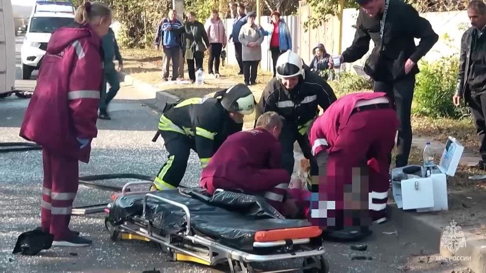 В Станице Луганской огнеборцы МЧС деблокировали пострадавшего при ДТП Столкнулись легковой автомобиль и рейсовый автобус