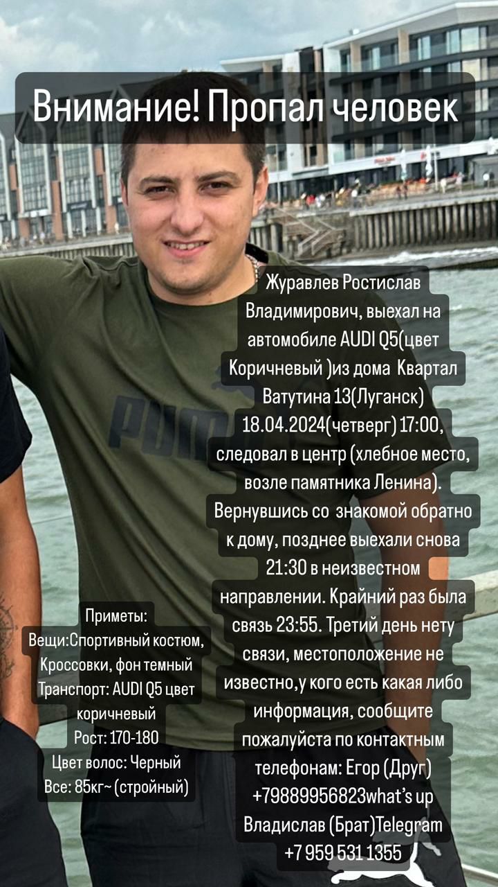 В соцсетях появилась ориентировка на луганчанина Ростислава Журавлева, связь с которым оборвалась в четверг, 18 апреля.